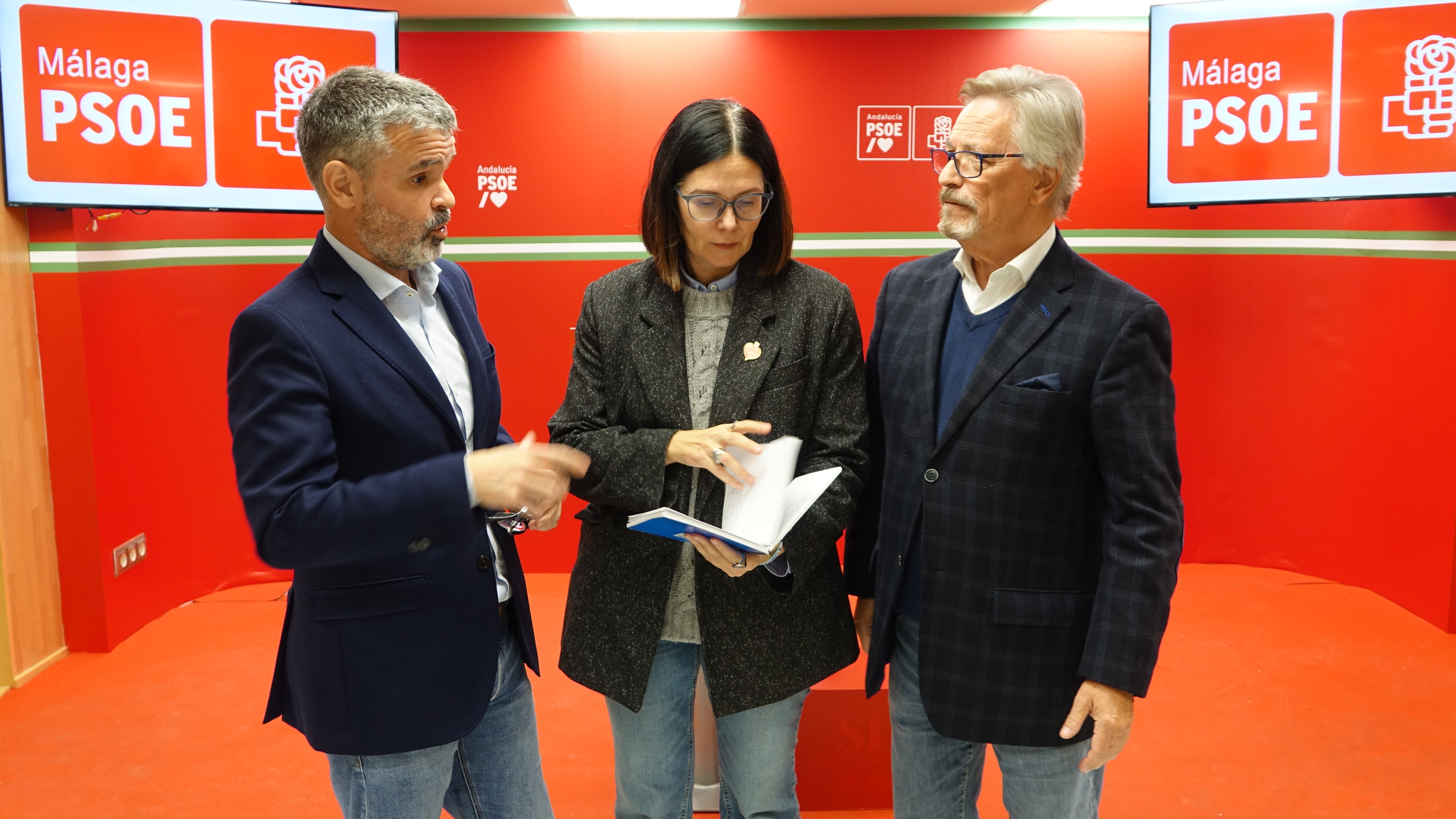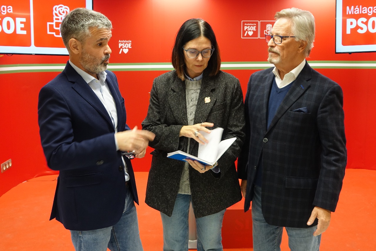 12/01/2024 - Pepe Bernal, Isabel Pérez y Rafael Granados en rueda de prensa en Málaga