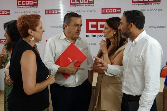 17/07/2023 - Daniel Pérez, Mari Nieves Ramírez y Fernando Cubillo en la sede del CCOO Málaga