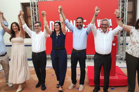 16/07/2023 - María Jesús Montero, Mari Nieves Ramírez, Ángeles Férriz, Daniel Pérez, Patricia Alba y David Márquez en el premio Carme Chacón