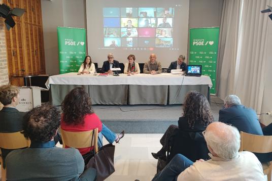 El secretario general del PSOE Málaga, Dani Pérez, junto a la secretaria de Empleo, María José González, y el concejal socialista, Mariano Ruiz