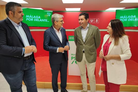 29052025 JOSELE AGUILAR, RAFAEL MÁRQUEZ; MARIBEL TOCÓN Y JOSELE GONZÁLEZ EN LA SEDE DEL PSOE DE MÁLAGA