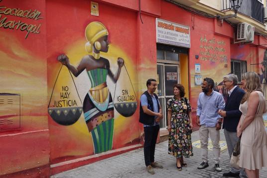 09/06/2025 - Josele Aguilar, Estefanía Martín Palop, Rosa del Mar Rodríguez y Ahmed Kalifa en visita a la Asociación Marroquí de Málaga