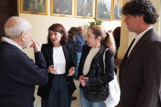 Begoña Medina, Rosa del Mar Rodríguez, Pablo Orellana y Mari Carmen Sánchez en la puerta del Ayuntamiento de Málaga sobre dependencia