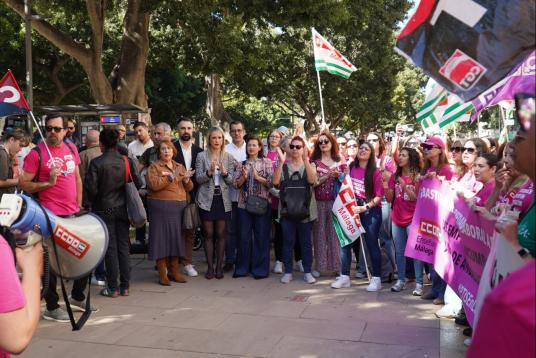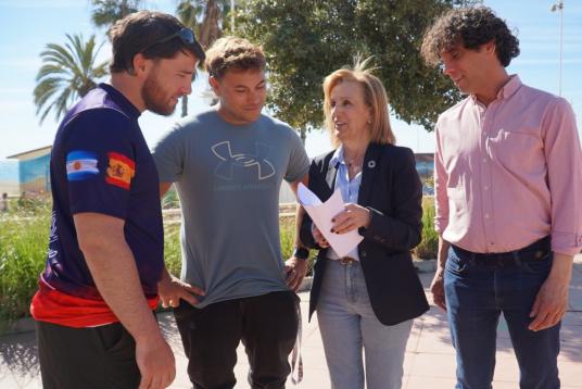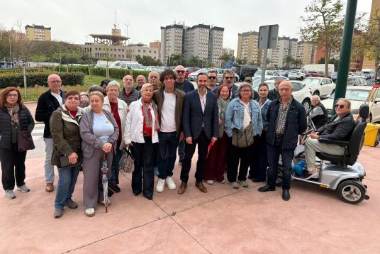 El portavoz socialista en el Ayuntamiento de Málaga, Daniel Pérez, y el concejal socialista Pablo Orellana con vecinos del entorno de Plaza Manuel Azaña