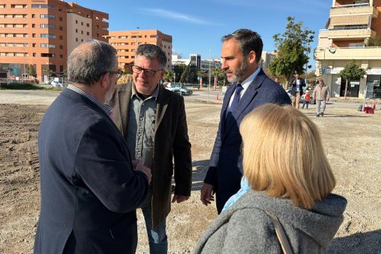 Daniel Pérez y Jorge Quero con vecinos en los terrenos del futuro parque Frank Capra en Teatinos