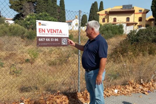 Salvador Trujillo junto a la parcela que alberga la Fuente del Rey en Churriana