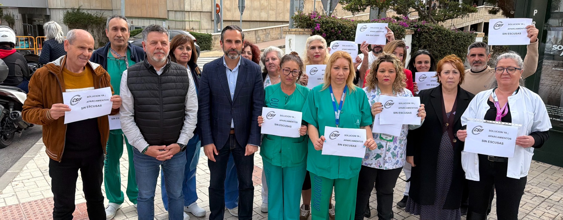 El grupo municipal del PSOE ha sumado hoy las voces de una veintena de trabajadores de la sanidad pública, de los hospitales Civil y Materno de la capital, para exigir al presidente de la Junta de Andalucía, Juan Manuel Moreno, y al alcalde de Málaga, Francisco de la Torre, “que pongan en marcha las medidas prometidas para solucionar el caos circulatorio y de estacionamiento” generado en el entorno de estos dos centros hospitalarios tras el inicio de las obras del nuevo hospital.