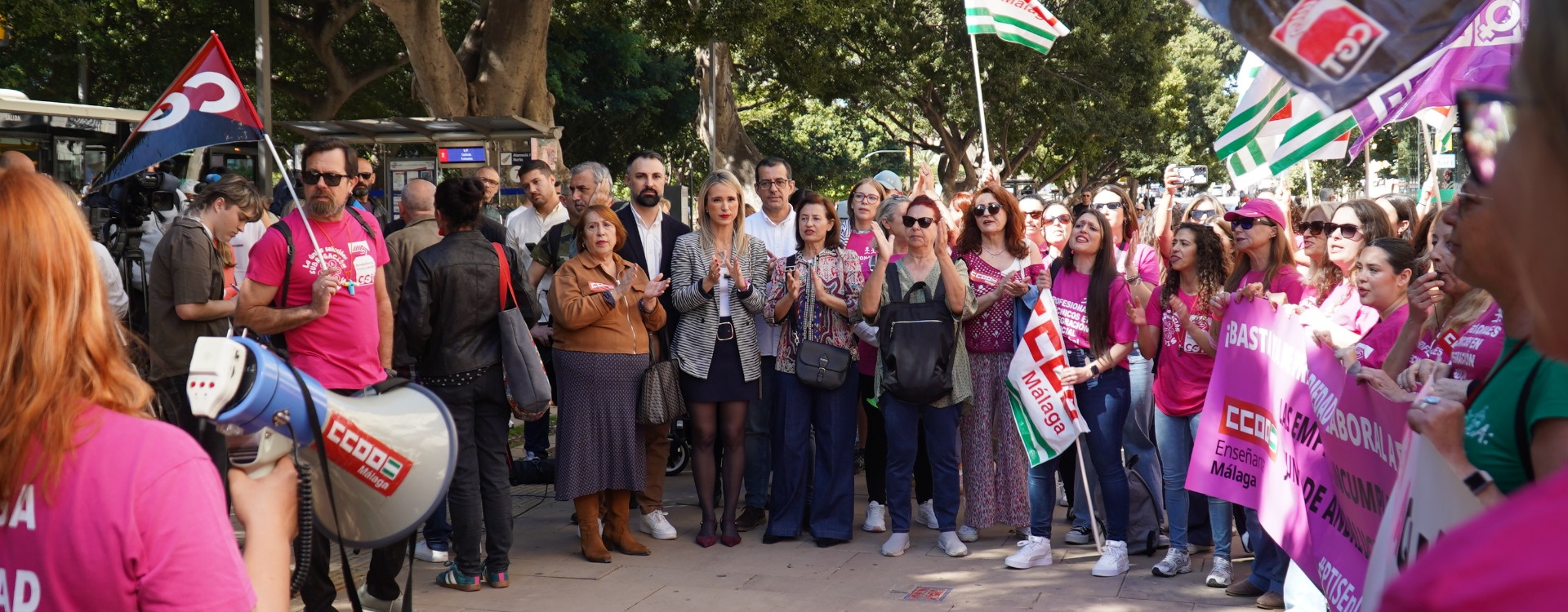El grupo municipal socialista en el Ayuntamiento de Málaga participa en la concentración del Personal Técnico de Integración Social este miércoles frente a la delegación del gobierno regional en la capital malagueña, donde unos tres centenares de personas han reivindicado “mayor plantilla y recursos” para dar una atención de calidad al alumnado con necesidades especiales