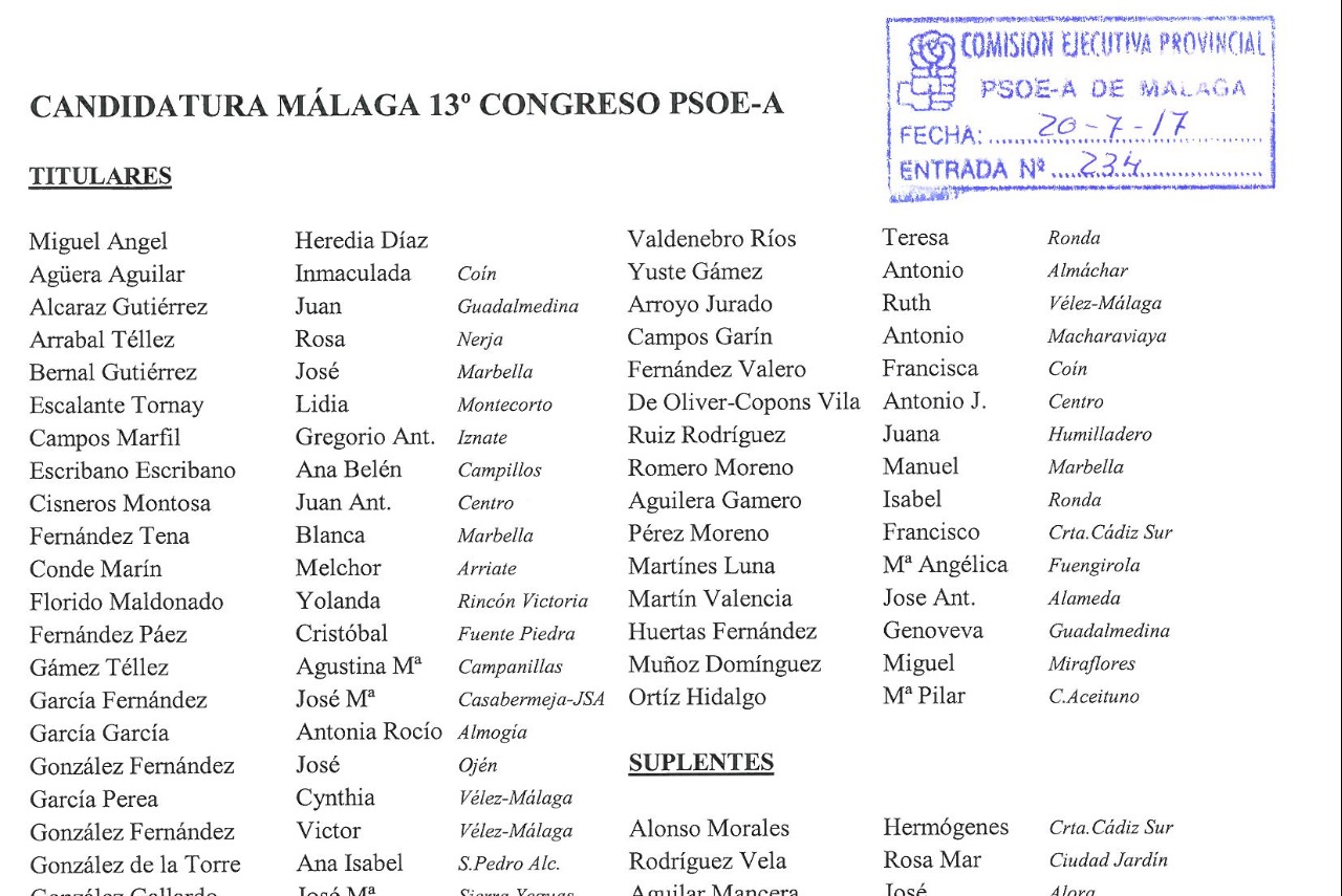 Heredia: "El liderazgo de Susana Díaz al frente del partido suma para ser el partido preferido por los andaluces y andaluzas"El PSOE de Málaga presenta una única lista de 62 delegados para el Congreso Provincial Extraordinario de mañana